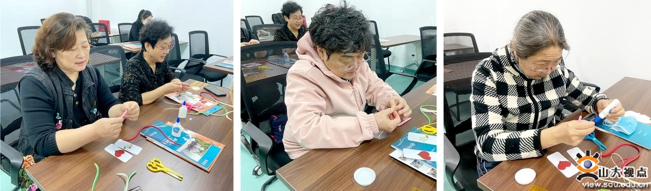 大家一边制作一边分享经验,进一步拉近了彼此的距离。经过两个小时的精心制作,每位老同志都完成了蕴含个人心意的衍纸作品。大家欣赏着彼此的作品,脸上露出了灿烂的笑容。