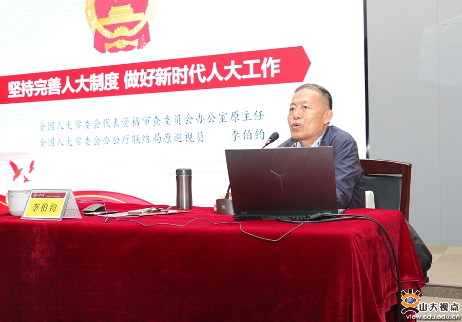 开幕仪式后,李伯钧为现场师生作题为“坚持完善人大制度,做好新时代人大工作”的报告。