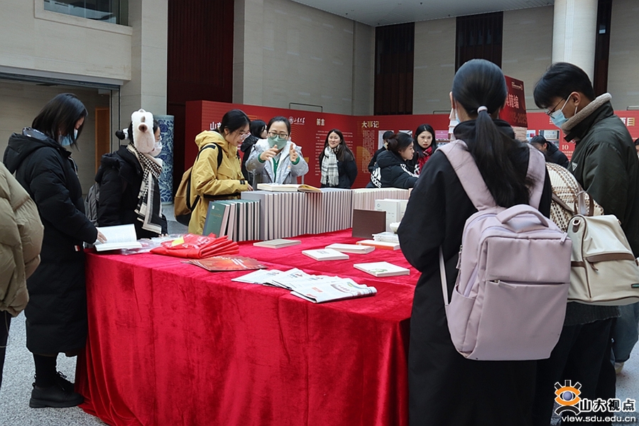 大家看到实物展览时,纷纷驻足翻阅浏览。《中华优秀传统文化“两创”活动集锦》和《山东大学中华优秀传统文化“两创”论文集》等受到了学生党员们的喜爱称赞。