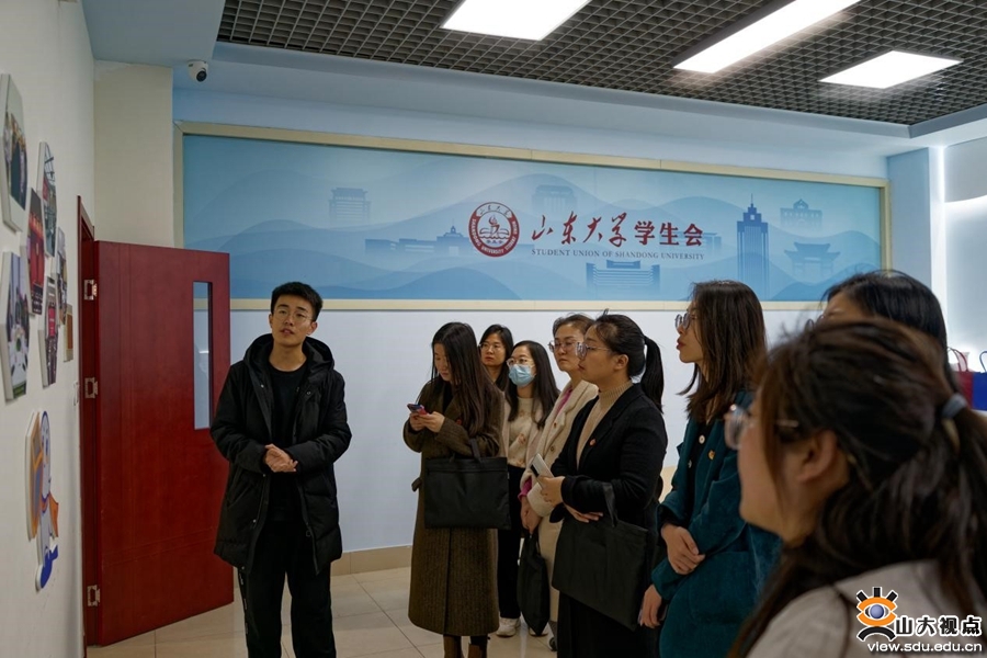 在研学实践中,参训团干部前往革命传统教育基地——济南市解放阁进行红色研学,深入体悟革命先烈的奋斗精神,进一步坚定了理想信念,增强了组织性和凝聚力。随后,大家参观了山东大学校史馆、大学生活动中心、中银慧谷•青年会客厅等育人场地,针对如何提升场地育人实效进行现场讨论。