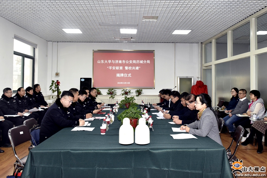 [本站讯]12月13日,山东大学与济南市公安局历城区分局“平安联盟 警校共建”揭牌仪式在中心校区举行。山东大学党委副书记王君松出席仪式并致辞,济南市历城区副区长、公安分局局长赵锋出席仪式并讲话。