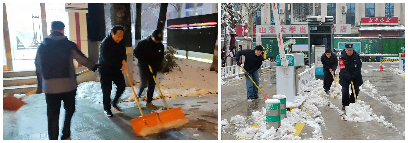 [本站讯]近日,济南市连续寒潮、暴雪,路面湿滑。党委保卫部立足服务师生,召开部处工作会议,部署防范极端天气可能带来的交通安全隐患,做好应急处突准备,组织各校区清扫路面积雪,加强校园安全巡逻及消防安全巡查,以保障师生出行安全,为师生营造良好的教学科研环境。
