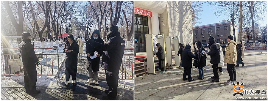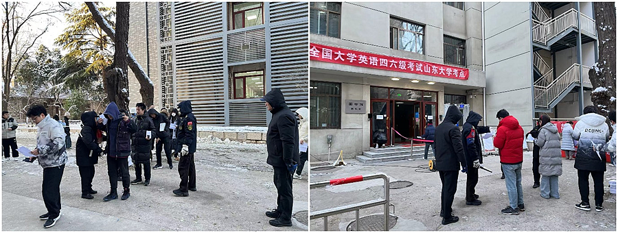 16日,保卫部在低温寒风下,全力保障英语四六级考试顺利进行。