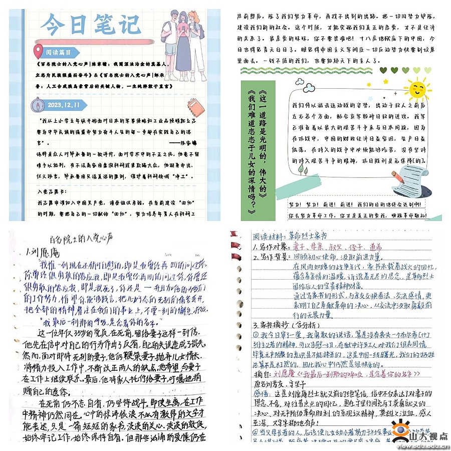 山东大学本科学生党支部负责人培训示范班临时党支部汇编了由刘愿庵、冷少农、陈毅安、左权、袁国平、沙文求六位革命烈士家书和百名院士入党心声组成的学习材料,在各学院本科生党支部组织开展与革命先辈和党员科学家跨时空的心灵对话,感悟浓厚炽烈的初心使命、责任担当与家国情怀。文学院本科生党支部开展“缅英烈·守初心”主题党日活动,引导广大学生党员和入党积极分子珍惜革命先辈抛头颅洒热血缔造的和平繁荣局面,70余位同学以纸短情长的真挚笔记寄托对革命先烈的哀思与缅怀。物理学院本科生党支部组织支部党员集中观看“我的入党申请书——于渌院士的入党故事”采访视频,分享阅读“百名院士的入党心声”的心得体会。数学学院本科生党支部组织即兴诵读与现场讲演活动,10余位支部成员朗诵书信、讲述家书背后的故事,感受革命烈士鲜活面貌,体悟他们舍生取义的崇高党性。材料学院本科生党支部采用书信阅读、观看视频资料、现场讲演等方式多渠道、多手段推进沉浸式学习。