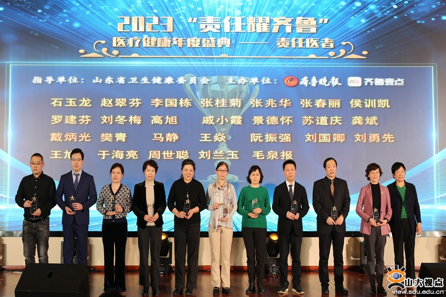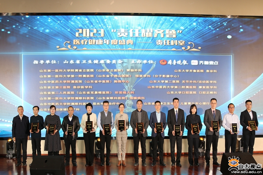 [本站讯]1月13日,由山东省卫生健康委员会指导、齐鲁晚报·齐鲁壹点主办的2023“责任耀齐鲁”山东医疗健康年度颁奖仪式暨融媒传播分享会在济南举办。山东大学齐鲁医院荣获“责任医院”称号,急诊科荣获“责任科室”称号,小儿内科主任赵翠芬荣获“责任医者”称号。山东大学齐鲁医院党委副书记、党委组织部部长张欣平出席会议并接受采访。