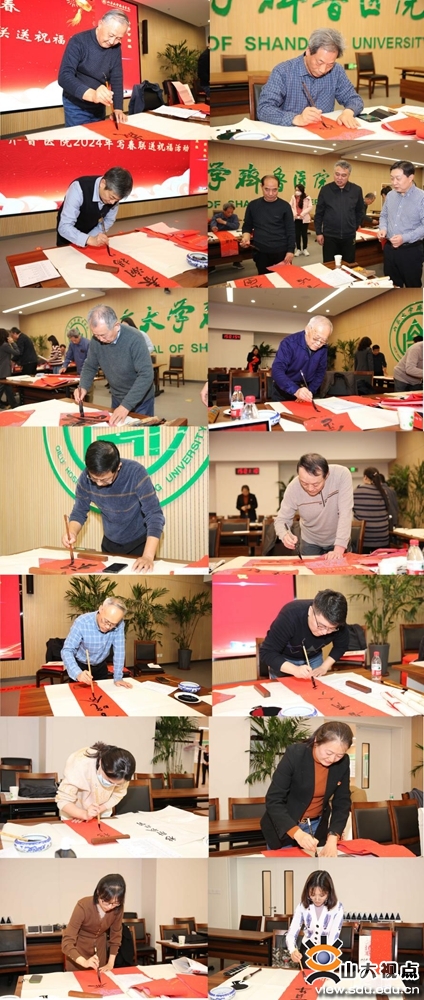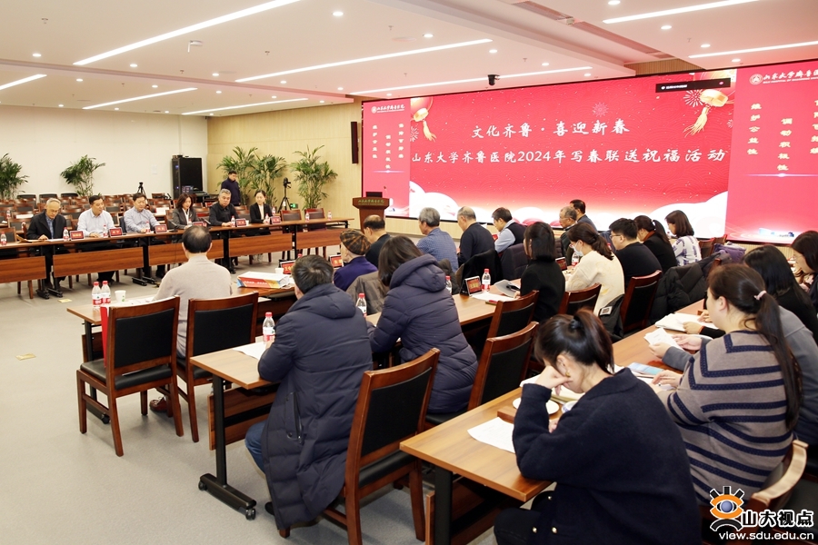 [本站讯]在新春佳节来临之际,为弘扬中华优秀传统文化,1月29日,山东大学齐鲁医院党委宣传统战部、离退休职工服务中心联合举办“文化齐鲁喜迎新春”2024年写春联送祝福活动。医院党委书记陈鑫出席活动并讲话,党委副书记、党委组织部部长张欣平主持活动,党委宣传统战部部长李宁、离退休服务中心主任李勇、医师培训处处长赵栋修等相关职能部门负责人以及医院书法爱好者代表参加活动。