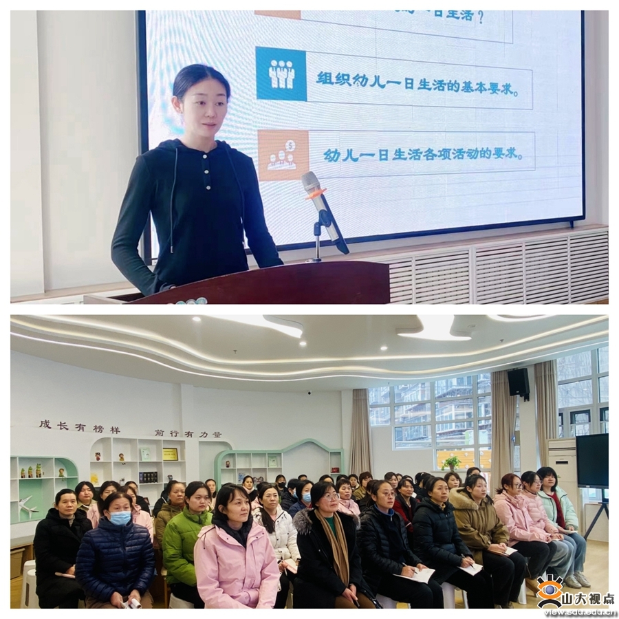 青岛校区实验幼儿园副园长高胜男作“立德树人 以爱润心——优化班级管理小策略”主题讲座。她表示,幼儿园里班级是最小的集体,班主任的班级管理水平,直接影响整个班级的活动氛围和活动秩序。通过做好幼儿园班级管理工作,把真心献给家长,把诚心献给同事,提高幼儿教育质量,为幼儿提供一个有序、和谐的学习生活环境,培养幼儿良好的生活习惯、社交能力和心理素质,促进幼儿全面和谐发展。