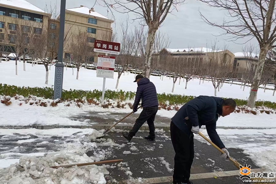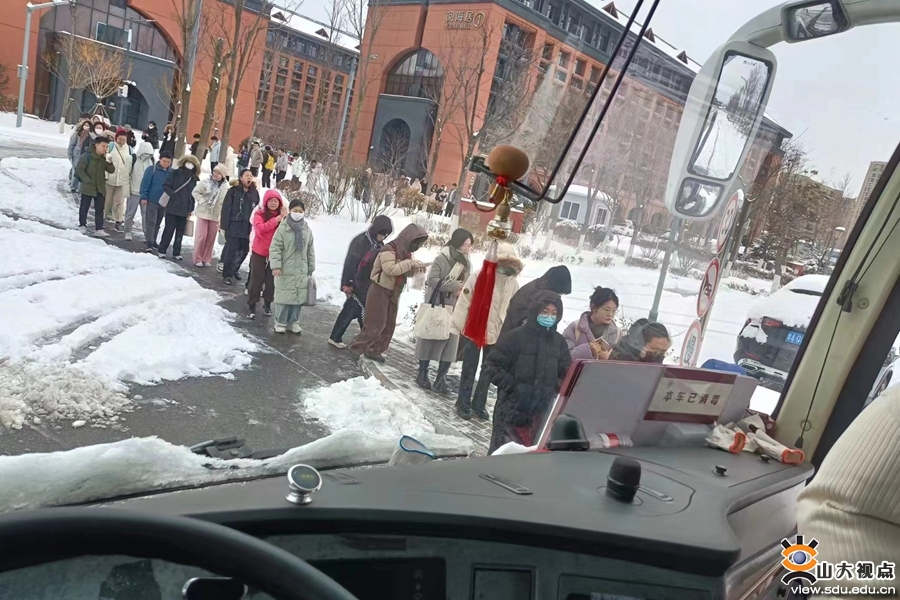 2月20日,青岛迎来寒潮、大雪,青岛校区选择乘坐微公交出行的师生数量大增。中心提前启动应急预案,增派车辆、清扫停车场和站点积雪、提醒驾驶员谨慎驾驶。微公交驾驶员提醒下车学生的话语“下车请注意安全,注意脚下积雪”,在乘车学生的耳边不断响起。在路上遇到步行的学生,即使不到站牌停靠点,驾驶员也会主动停车询问是否乘车,在风雪严寒中将学校的温暖送到师生身边。21日、22日,济南遭遇大雪天气,中心组织济南校本部工作人员齐上阵,及时清扫交通车班车停车场、快递、收发等工作场所积雪,防止师生滑倒,保障师生出行安全,做到“雪中保畅通、雪后保干净”。