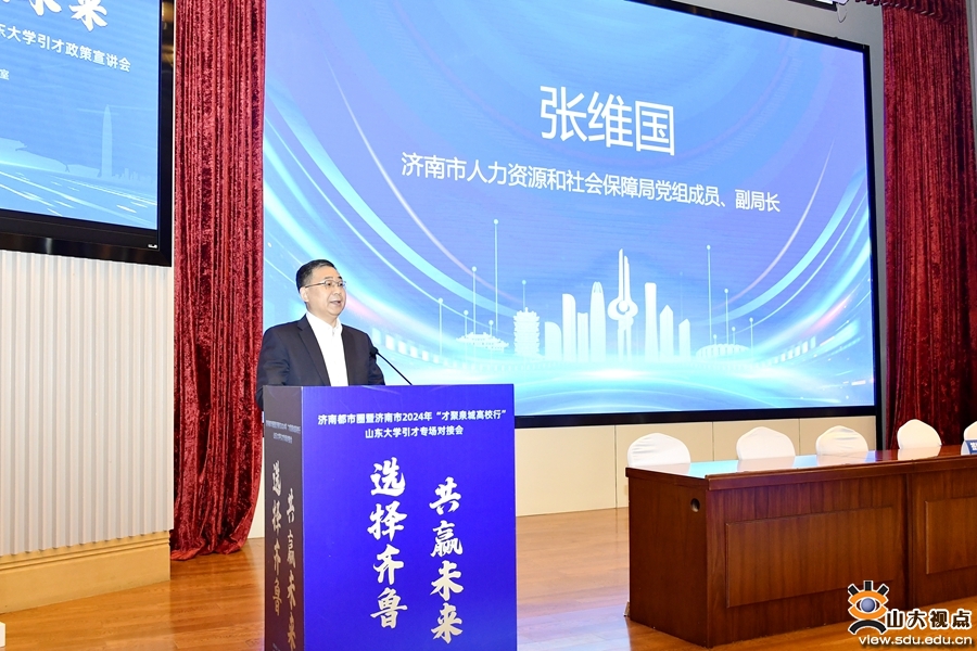 张维国向山大学子介绍了济南市引才留才、就业创业政策。他表示,济南市委市政府深入实施强省会战略,着力推进人才、高校、企业、园区、产业“五位一体”人才引进合作新机制高质量发展,出台了“双30条”等一系列支持青年人才集聚发展的“硬核”措施,期待越来越多的山大学子选择齐鲁、留在济南,实现梦想、共赢未来。