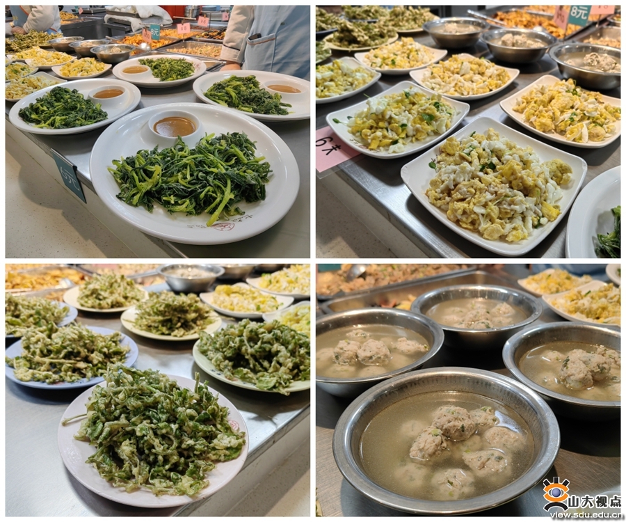 春天是最适合吃野菜的季节。为了让师生们体验舌尖上的春天,千佛山校区舜园二层根据季节变化调整菜品,主打推出鲜嫩可口、营养丰富的应季时令野菜产品:荠菜丸子,蒸面条菜,炸花椒芽,春苗双色蛋,香椿龙利鱼,引得师生们纷纷前来尝鲜。