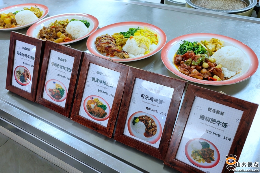 趵突泉校区杏园餐厅三楼教工餐厅优化无国界特色主题窗口产品,推出了胡萝卜咖喱鸡、菌菇鸡肉、烤菠菜虾仁、番茄肉丸、牛肉芦笋等美式特色焗饭,泰香辣炒鸡套餐、马来咖喱手枪腿、菠萝虾仁炒饭、咖喱牛肉炒饭等东南亚系列美食,以及玫瑰奶油海鲜和玫瑰芝士年糕意面、五花铁板烧、豆腐铁板烧等韩餐日式特色菜品,受到年轻师生的喜爱。