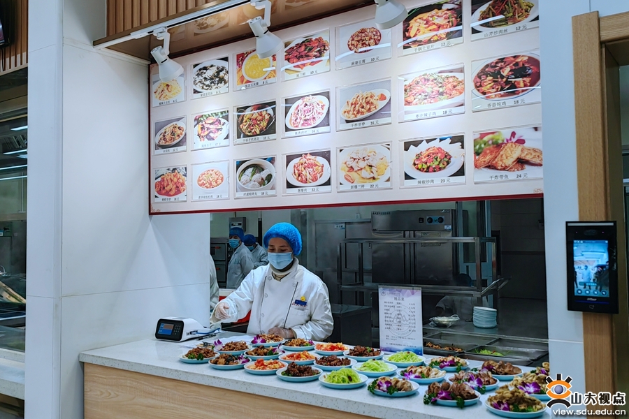 寒假期间,洪家楼校区食堂技术研发团队通过整合优化,对7号食堂新上项目全部进行试运行,经过反复论证,新学期开学全面推出。共新增了西式简餐、现炒盖浇饭、零点小炒、水煮肉片、手工水饺、四川冒菜等6大类30个品种。并对老旧灯光改造,在售餐窗口安装了射灯,提升餐厅环境。