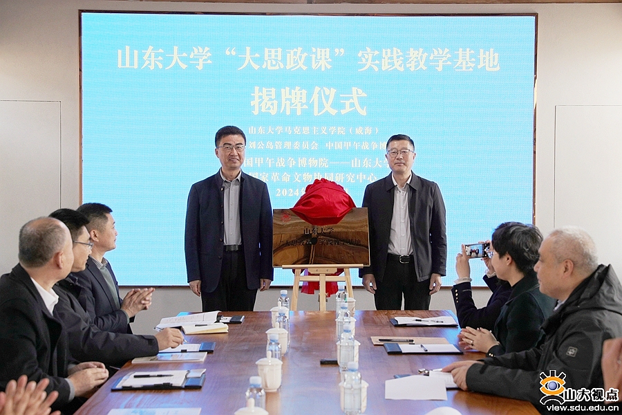 [本站讯]为深入学习贯彻习近平总书记关于“大思政课”建设的重要指示批示精神,3月18日,山东大学“大思政课”实践教学基地揭牌仪式暨深化以革命文物为主题的“大思政课”优质资源示范项目座谈会在刘公岛举行。威海校区党工委副书记于振涛、刘公岛管理委员会主任周德刚出席仪式并为基地揭牌。