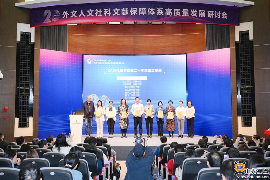 [本站讯]4月25日,“CASHL(中国高校人文社会科学文献中心China Academic Humanities and Social Sciences Library)服务启动二十年·外文人文社科文献保障体系高质量发展”研讨会在复旦大学开幕。在表彰环节,图书馆荣获突出贡献奖,图书馆副馆长程川生作为代表上台领奖。图书馆学科服务中心主任李修波的论文“一路相伴十年同行——寻找CASHL中的精彩世界”获优秀论文奖,并受邀作会议发言。