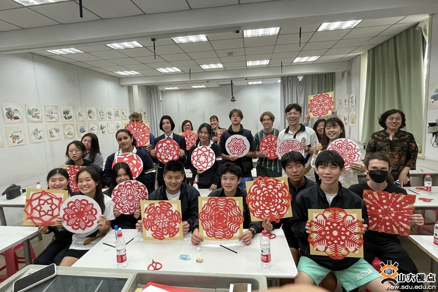 在山东大学附属中学千佛山校区,附中美术老师刘峂为澳大利亚访问团师生展示了一节别开生面的中国传统艺术手工课——剪窗花,给友好学校的师生留下了深刻的印象。