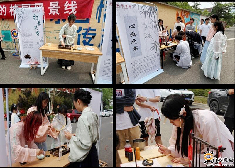 [本站讯]暮春花归去,浅夏绿意来。4月28日上午,山东大学图书馆第十一届文化节系列活动之“锦瑟韶华 赴一场穿越千年的文化之旅”汉服文化体验游园活动在软件园校区举办。