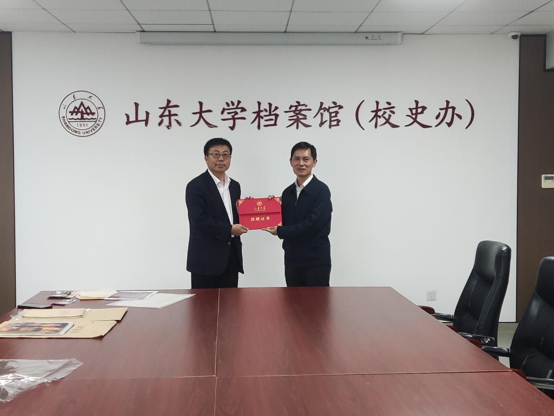 王宏伟先生表示,值此潘承洞先生诞辰90周年,很高兴能为母校档案校史工作贡献一份校友力量,期待这批档案资料能在相关校史研究中发挥价值。赵海对王宏伟先生的慷慨捐赠表示感谢,并向他颁发了捐赠证书。他表示,档案馆、校史办将妥为珍藏利用,同时希望社会各界、广大校友继续支持学校档案校史事业。