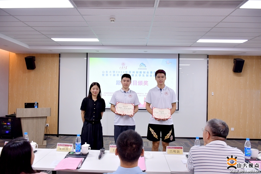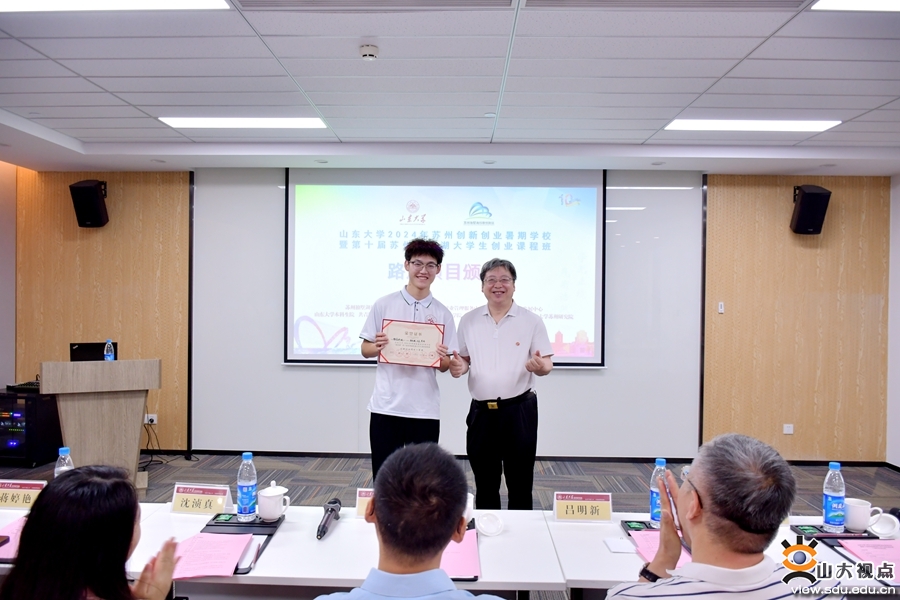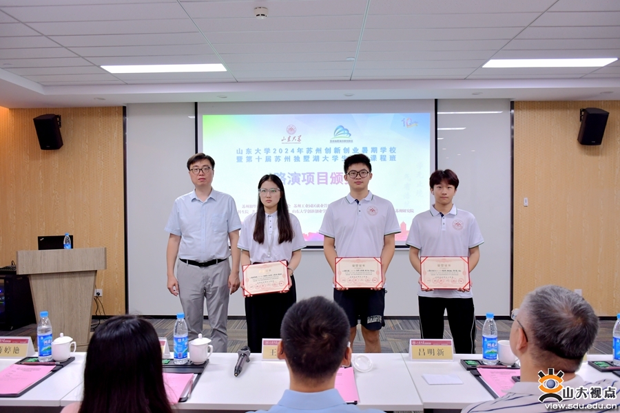 [本站讯]近日,山东大学2024年苏州创新创业暑期学校暨第十届苏州独墅湖大学生创业课程班圆满结课。11支双创团队结合一周的创新创业学习收获,围绕项目核心优势、创新点、商业模式等方面进行路演展示。苏州市劳动就业管理服务中心副主任王湘礼,苏州独墅湖科教创新区高校合作发展局副局长沈浈真,课程负责人、山东大学基建部部长、龙山校区(创新港)规划建设办公室主任吕明新,创新创业学院执行副院长邢建平出席活动。