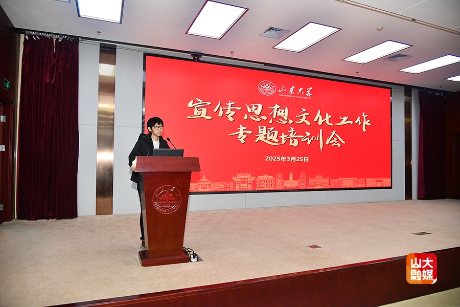 山东大学党委宣传部副部长林竹主持会议。学校各单位分管宣传工作的班子成员,各单位宣传专员、通讯员,一校三地宣传部门全体成员参加培训会。