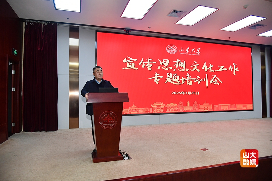[本站讯]3月25日下午,山东大学召开宣传思想文化工作专题培训会。科技日报社山东记者站站长王延斌、《中国社会科学报》山东记者站站长张清俐分别作培训报告。