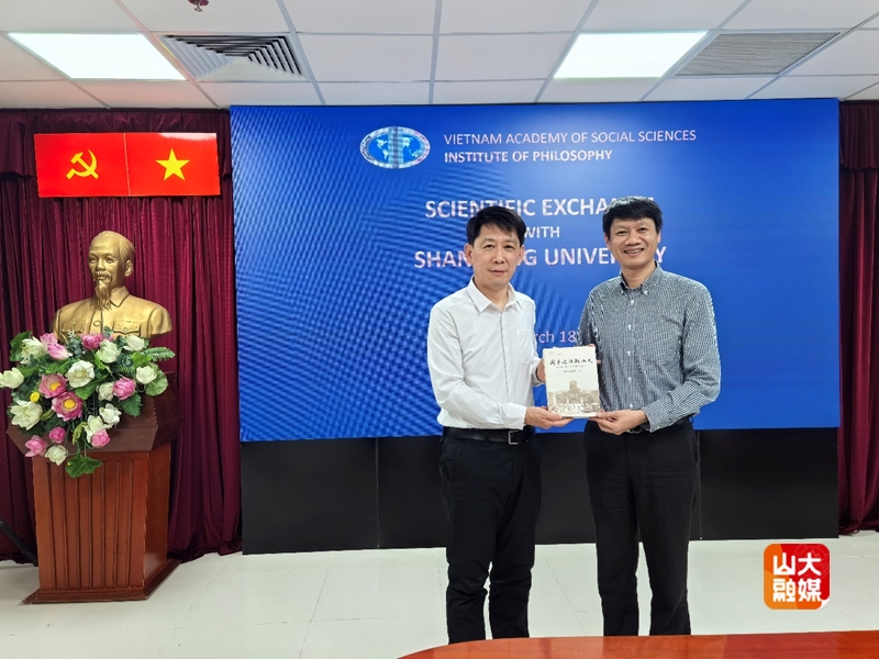 3月17日下午,代表团访问越南社会科学院哲学研究所。双方就在儒学研究、马克思主义研究、政党研究等领域开展科研合作、人才培养、联合举办国际会议等达成共识。该所所长阮才东的父亲阮才书先生是56级中文系十位越南留学生之一。张帅向其赠《我亲爱的新山大—中文系56级毕业五十周年纪念册》。两代人的山大情缘,谱写了一曲跨越国界、跨越时空的教育赞歌。