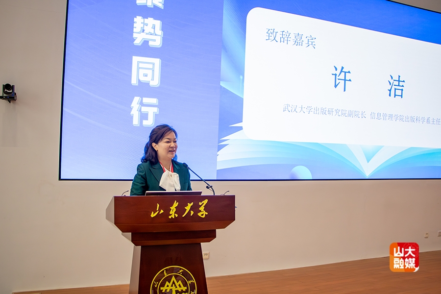 [本站讯]4月12日,全国“纸电协同馆配平台建设研讨会”在山东大学青岛校区举行。山东大学党委常委、党委宣传部部长张帅,武汉大学出版研究院副院长、信息管理学院出版科学系主任许洁出席开幕式并致辞。