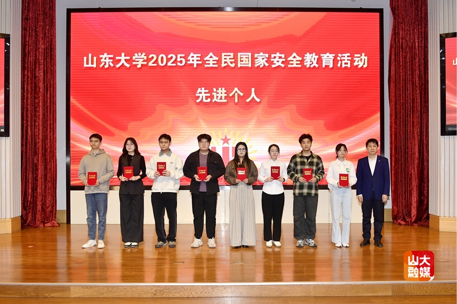 李向阳、张帅为2025年山东大学全民国家安全宣传教育系列活动的优秀组织单位和获奖个人代表颁奖。