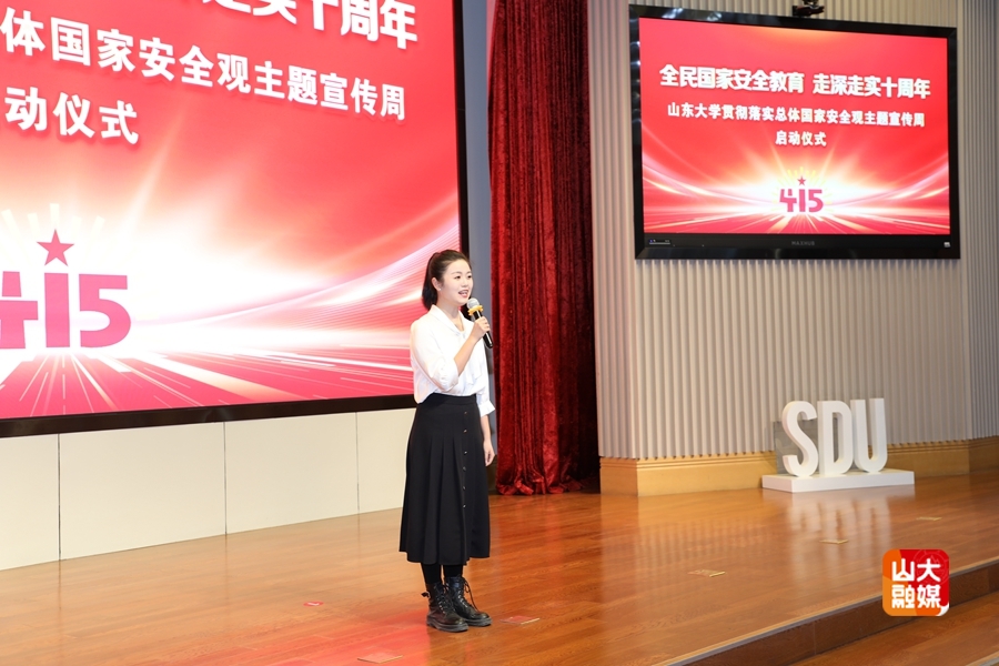 部分获奖作品进行了现场展演,主题宣讲《风的“颜色”——文化安全与青年担当》作为山东省国家安全主题获奖作品,通过激昂的话语展现青年一代维护文化安全的时代使命;《齐鲁走在前,国安挑大梁》以生动活泼的语言、坚强有力的态度向师生传递“国家安全,你我共担”的理念。