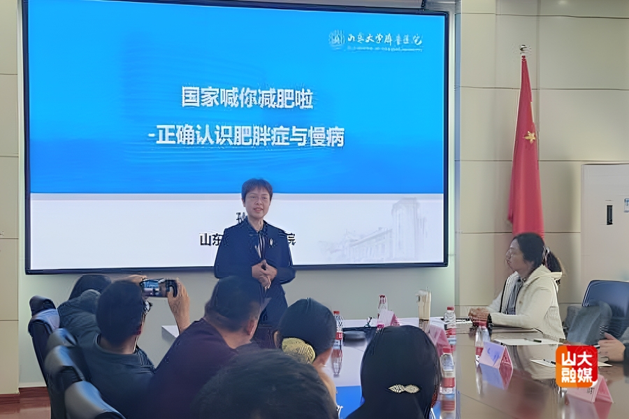 健康讲座中,齐鲁医院内分泌科孙磊主任通过合理膳食的搭配原则、适量运动的科学方法以及心理健康的重要性等方面,结合生动实例,向在场人员讲解了科学减重的相关知识。校医院医政办金翠香主任介绍了校医院的整体情况及特色服务,让师生们对校内就医有了更清晰且全面的认识。