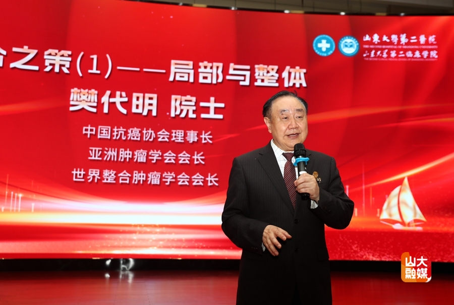 [本站讯]5月12日,山东大学第二医院举行中国抗癌协会肿瘤整合防治共建单位授牌仪式暨2025年齐鲁明德论坛。中国工程院院士、中国抗癌协会理事长、亚洲肿瘤学会会长、世界整合肿瘤协会会长樊代明出席论坛并作学术报告。山东大学第二医院党委书记柳丽华、院长冯世庆以及全体院领导出席活动。副院长靳斌主持活动。