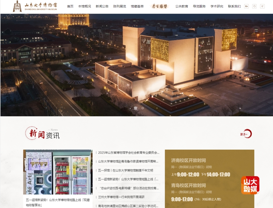 智慧平台,传播文化影响力。山东大学博物馆全新升级改版的官方网站正式上线。网站秉持智慧化、人性化的设计理念,致力于打造便捷高效的文化传播平台,弘扬山东大学的文化影响力,开启公众与历史的深度对话。