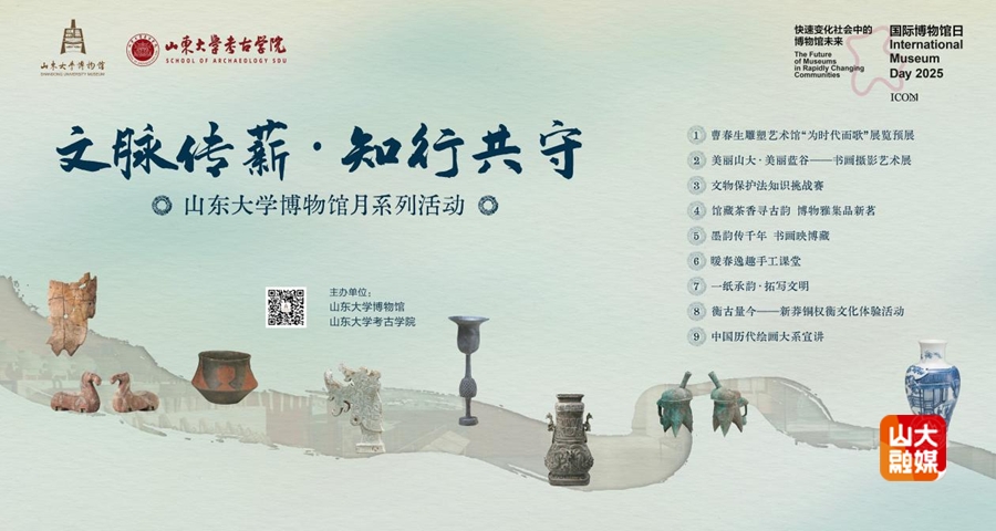 [本站讯]为庆祝第49个“5·18”国际博物馆日,山东大学博物馆策划系列活动,以文物为媒,用科技赋能典藏、以创新激活传统,串联考古实证与人文情怀,推动传统文化从典籍故纸走向当代生活,滋养校园人文气象。