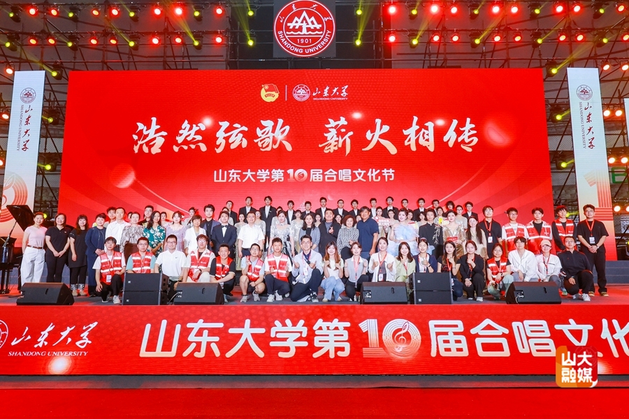 合唱文化节在全场师生同唱《我爱你中国》中拉开序幕。各学院合唱团依次登台表演,山东大学舜歌合唱团演唱了经典曲目《再回首》,艺术学院校友李佳忆及学生代表刘一敏、聂琳茹、彭奕添演唱了《春风十万里》。精湛技艺、巧妙创意,以及团队默契的配合,展现了合唱艺术独特魅力和山大青年师生的青春风采,生动诠释了“学在山大,快乐成长”。