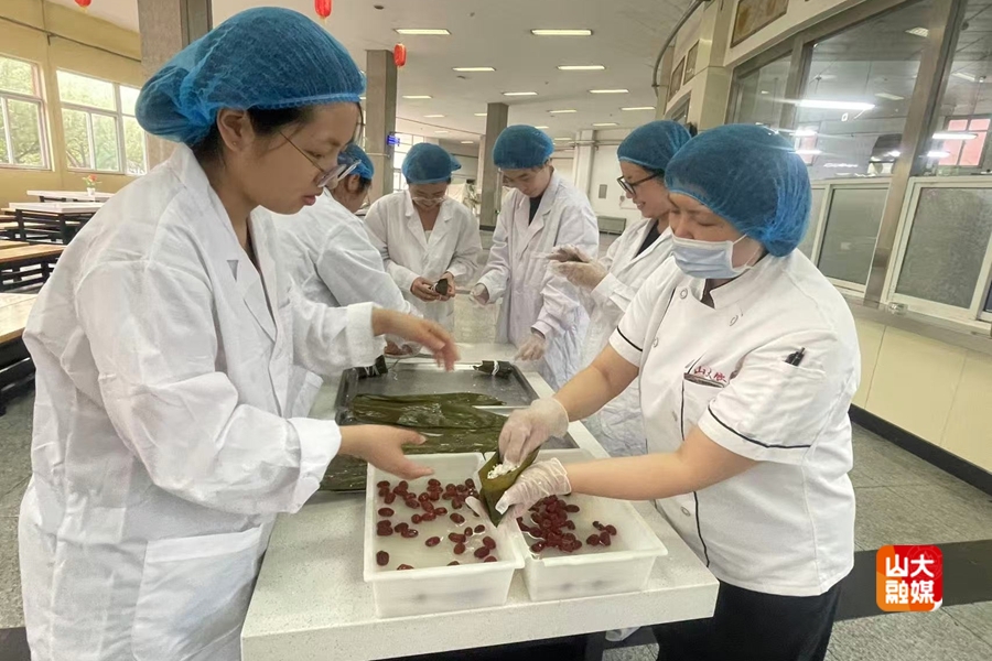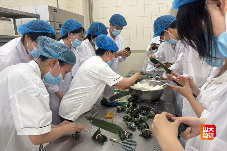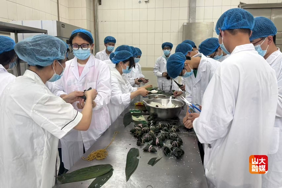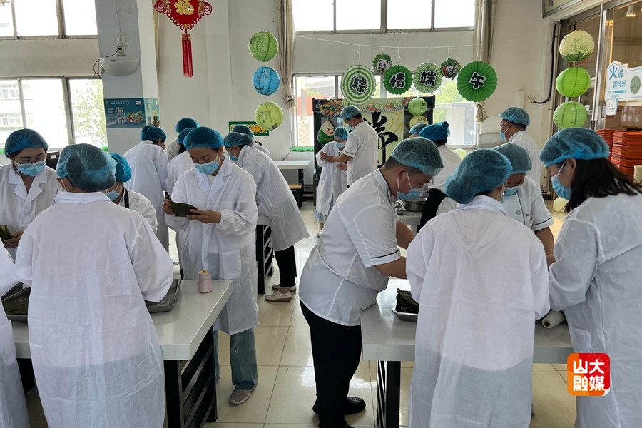 洪家楼校区餐饮部联合外国语学院、艺术学院、继续教育学院及校区图书馆,举办“浓情端午、粽叶飘香” 包粽子活动。食堂工作人员现场示范卷叶、填馅、捆扎等技巧,与教工们一同包出形态饱满的传统粽和创意花样粽,在指尖缠绕间,感受着传统节日的仪式感,现场氛围温馨融洽。