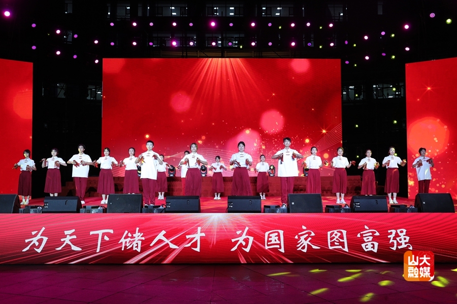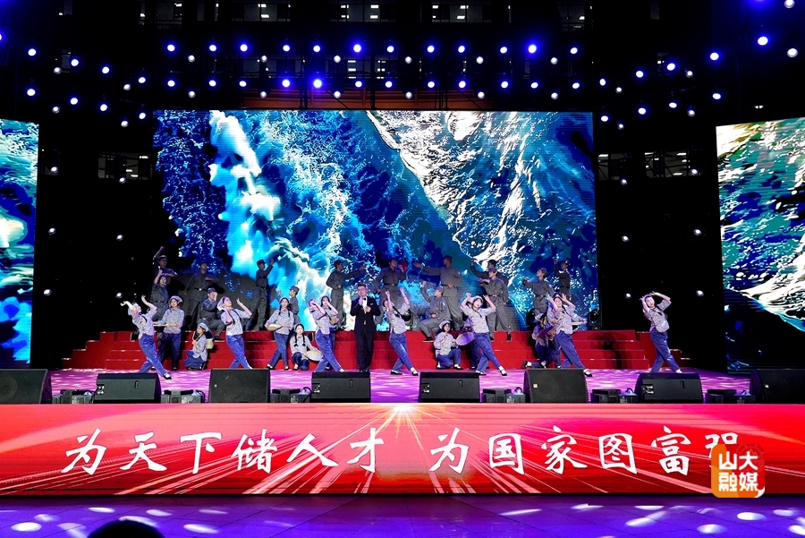 序篇启幕,《我爱这蓝色的海洋》唱响守卫祖国海疆的深情告白。汇演上篇,朗诵《峥嵘海疆》《红色家书》追忆中华民族向海图强的奋进史诗,缅怀为民族独立和解放事业牺牲的革命先烈;情景剧《烽火天福山》《乳娘》再现胶东人民坚如磐石的理想信念和敢于斗争的革命精神。汇演下篇,情景剧《永怀赤诚》感悟以郭永怀为代表的老一辈科学家无私奉献、勇攀高峰、以身许国的崇高品格,进一步激发青年学子在中国式现代化建设中勇毅前行、砥砺奋进的担当使命;大合唱《我的祖国》、快板说唱《青年力量》、舞蹈《大河之子》抒发了青年学生的爱党爱国热情,展现出自信自强、刚健有为的精神风貌。尾声篇,合唱《中国,中国,鲜红的太阳永不落》彰显了中华民族坚韧不拔的意志和强大的生命力、凝聚力、战斗力,以及中国青年“请党放心,强国有我”的精气神。