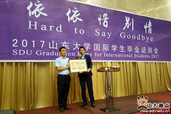[本站讯]6月26日晚,以“依依惜别情”为主题的山东大学留学生毕业话别会暨2017年留学生毕业校友理事、2017届留学生优秀毕业生颁奖典礼在中心校区学术交流中心举行,留学生毕业生及家属、留学生联谊会代表和校友理事等近200人参加。