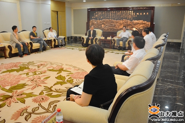 会见中,陈向阳介绍了山东大学的发展历史及办学特色,简要回顾了学校对台交流开展情况,希望今后有更多台湾青年到山东大学学习,山东大学愿同台湾各界一道,为弘扬中华优秀传统文化,促进两岸人民之间的交流而不懈努力。郁慕明表示,教育是强国之本,青年之间的交流在两岸交流中扮演着重要的角色,青年是两岸和平发展的未来,希望通过举办“中华儿女文史体验营”活动,增进台湾青年对中华优秀传统文化和大陆最新发展状况的了解,进一步推动两岸交流合作。山东大学港澳台事务办公室、统战部有关负责人参加了会见。