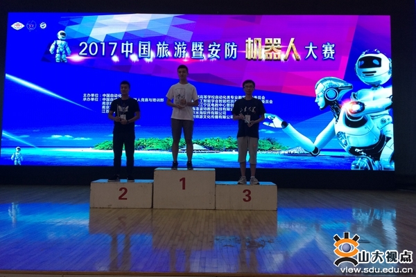 [本站讯]7月27日,2017中国旅游暨安防机器人大赛在南京举行,山东大学代表队获得格斗搏击项目季军,其余项目获得二等奖两项。