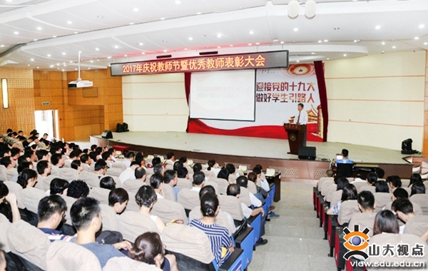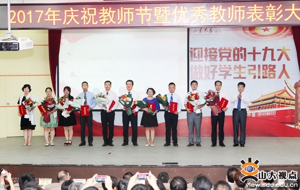 [本站讯]在第33个教师节来临之际,9月9日下午,山东大学(威海)召开庆祝2017年教师节暨优秀教师表彰大会,表彰本年度“山东大学(威海)优秀教师”、“山东大学(威海)先进教育工作者”、第八届“我最喜爱的导师”、2016—2017学年优秀本科生导师、第九届全国高校辅导员年度人物等。山东大学副校长、山东大学(威海)校长刘建亚,山东大学(威海)党工委书记尹作升出席大会。