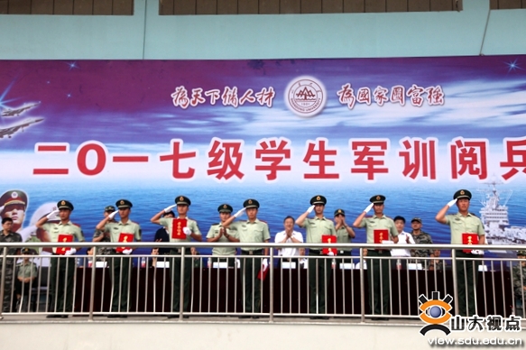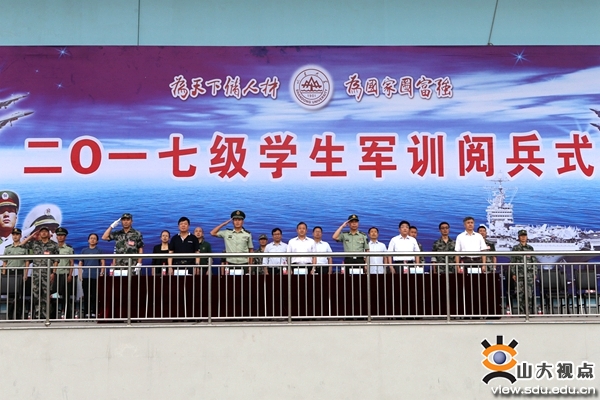 2017级军训阅兵式在雄壮激昂的《中国人民解放军军歌》中落下帷幕。山东大学(威海)教务处、学生工作部、人民武装部等部门负责人,各学院党政主要负责人、分管学生工作书记(副书记)及2017级学生辅导员参加了阅兵式。