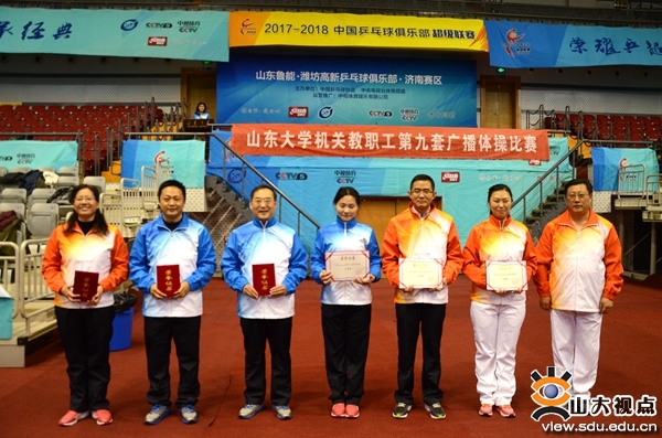 [本站讯]1月4日,为丰富机关教职工文化生活,展示机关教职工健康向上的精神风貌,机关工会在中心校区举行了机关教职工第九套广播体操比赛。校党委副书记仝兴华,副书记、纪委书记陈向阳参加活动并为获奖团队颁奖。