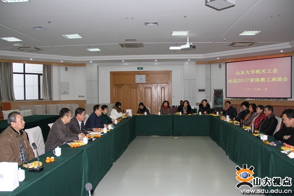 2017年机关荣休教工代表、机关工会委员、有关部门工会负责人等20余人出席座谈会。
