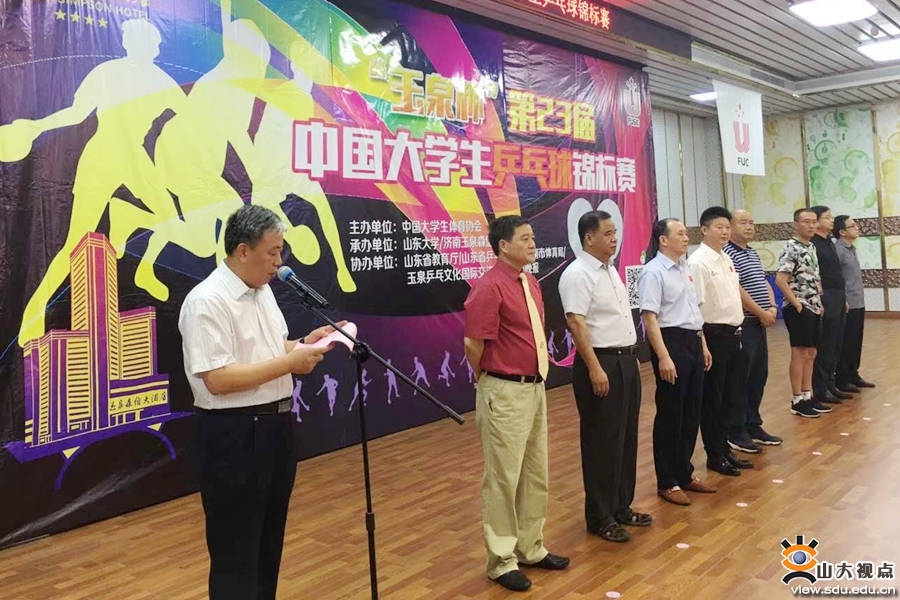 [本站讯]7月9日,“玉泉杯”第23届中国大学生乒乓球锦标赛开幕式在济南举行。山东大学党委副书记仝兴华,教育部学生体育协会联合秘书处政策法规办公室主任、中国大学生体育协会常务理事王晓毅出席开幕式。