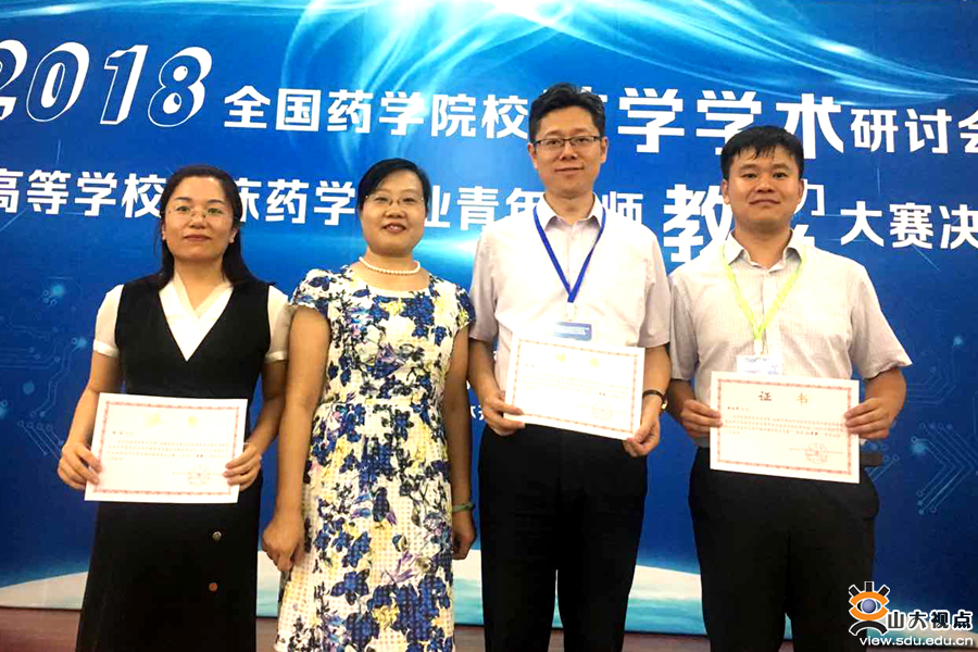 [本站讯]近日,“2018全国药学院校教学学术研讨会暨高等学校临床药学专业青年教师教学能力大赛决赛”在乌鲁木齐举行。山东大学药学院方浩和杨蕊两位老师分别荣获一等奖,刘永军老师荣获二等奖。