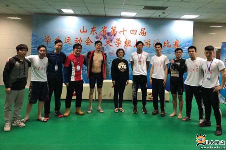 [本站讯]11月10日至11日,由山东大学承办的山东省第十四届学生运动会游泳比赛(大学组)在中心校区举行。山东大学游泳队在教练陈蔚蓝、庞博的带领下,利用课余时间积极备战,在比赛中全力拼搏,默契配合,助力团队获得了甲组团体总分第一名、丙组团体总分第三名以及体育道德风尚奖,共获得冠军15个、亚军9个、季军6个。