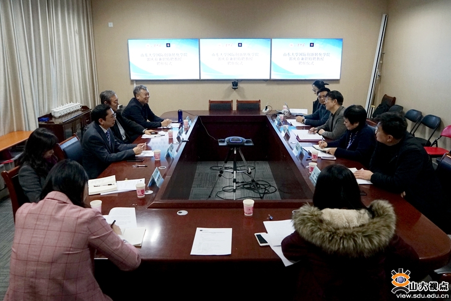 韩圣浩表示,郭庆存教授作为山大校友,重新回归母校工作,学校感受到了校友对母校的关心和情怀,相信郭庆存教授的加盟能协助国际创新转化学院逐步理清发展思路和实施规划,推进学院科学研究、平台智库建设、人才培养、服务社会等各方面工作开展。郭庆存教授回顾了自己在山大的学习和工作经历,感恩母校培养,期望与学院师生一起努力,为母校新兴交叉学科发展、助推山东省新旧动能转换以及国家科技成果转化战略贡献自己的一份力量。