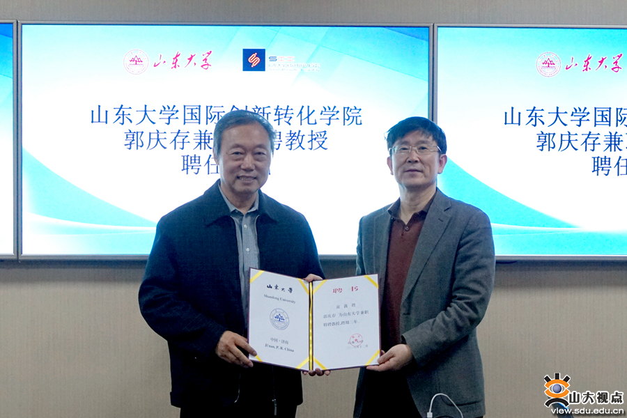 聘任仪式期间,郭庆存教授结合前期调研,就《山东大学国际创新转化学院建设与发展规划(讨论稿)》《山东大学创新转化学科建设方案(讨论稿)》和《山东大学创新转化研究院建设方案(讨论稿)》进行了解读,并将在入职后负责创新转化研究院的筹建工作。