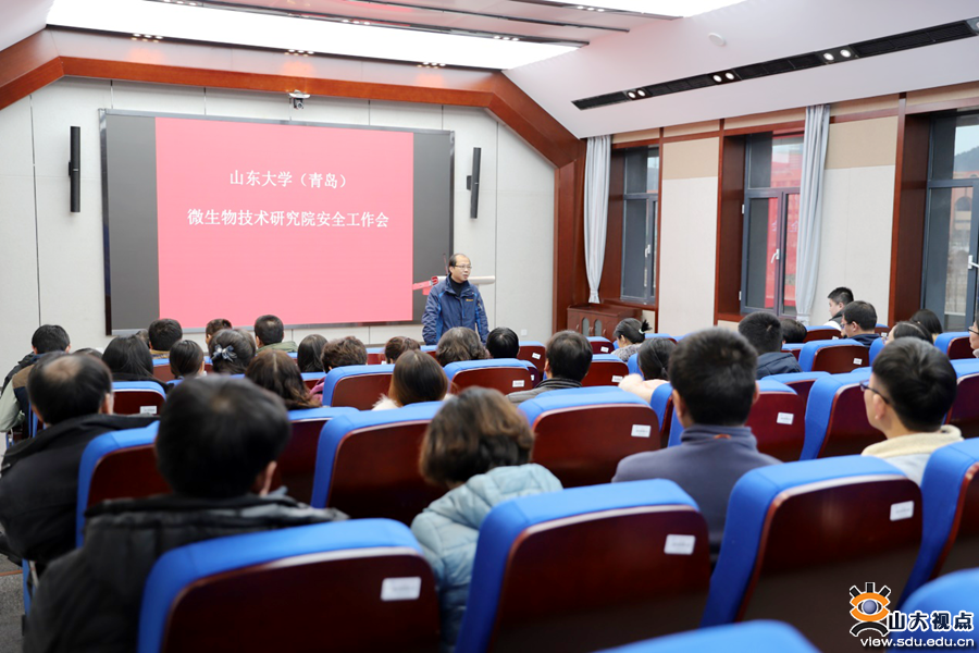 [本站讯]1月9日,微生物技术研究院召开安全工作会议,开展实验室安全教育培训。会议由研究院副院长林建群主持,青岛校区资产与实验室管理处赵岩、保卫处段德玺参加活动并作相关培训。