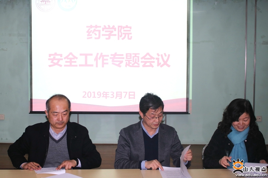[本站讯]3月7日,药学院在趵突泉校区召开安全工作专题会议。齐鲁医学院党工委书记侯俊平、齐鲁医学院副院长王凤山、齐鲁医学院财务与资产管理处处长李蕾、学院领导班子成员及全体教职工参加会议。会议由学院党委副书记马宏峰主持。