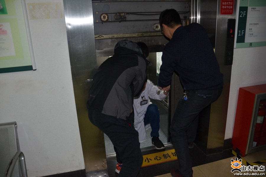 活动首先对应急供电进行了演练,后勤工作人员有序处理紧急停电事故,一边对纯净水、动力气系统等进行紧急修复,同时检查转换开关,迅速启动应急电源以满足停电区域的应急应用。随后进行了电梯应急停滞处理演练。电梯因停电运行停止时,被困人员立即按下电梯内的报警按钮,电梯管理员接到求救信号后,立即赶到事故现场,一边维护现场秩序,一边打开电梯轿厢,成功救出被困人员,并对电梯进行全面检查,符合运行条件后,电梯又重新投入运行。在污水应急演练中,后勤部展示了运用水泵将出现外溢的污水泵入市政污水管网、避免污水外溢的应急操作流程。